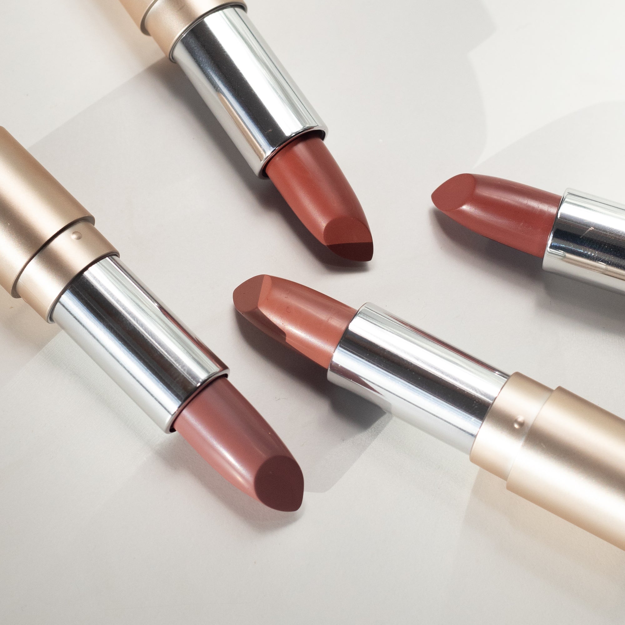 Elevate your everyday look with our satin cream lipsticks, designed for weightless comfort and perfect for on-the-go. Whether you prefer a subtle dab or a swipe of colour, these lipsticks are your everyday makeup bag essential. Pair with our Core Four Nude Lip Liners, as suggested by founder Elanna.